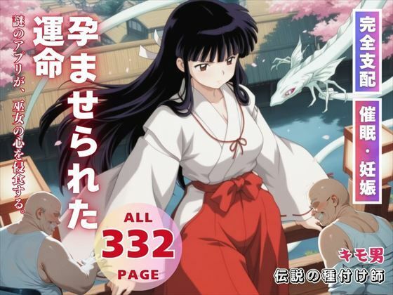 ■《作品タイトル》 孕ませられた運命 謎のアプリが、巫女の心を侵食する。 桔●は、突如現れた謎のおじさんが持つ「謎のアプリ」によって、自分の意思とは無関係に彼に惹かれていく。アプリの力に抗えず、次第に心と身体を支配されていく桔梗。おじさんの命令に逆らえず、好き放題に翻弄される日々が続く。最初は抵抗していた彼女だが、やがてアプリの呪縛に溺れ、ついには妊娠…